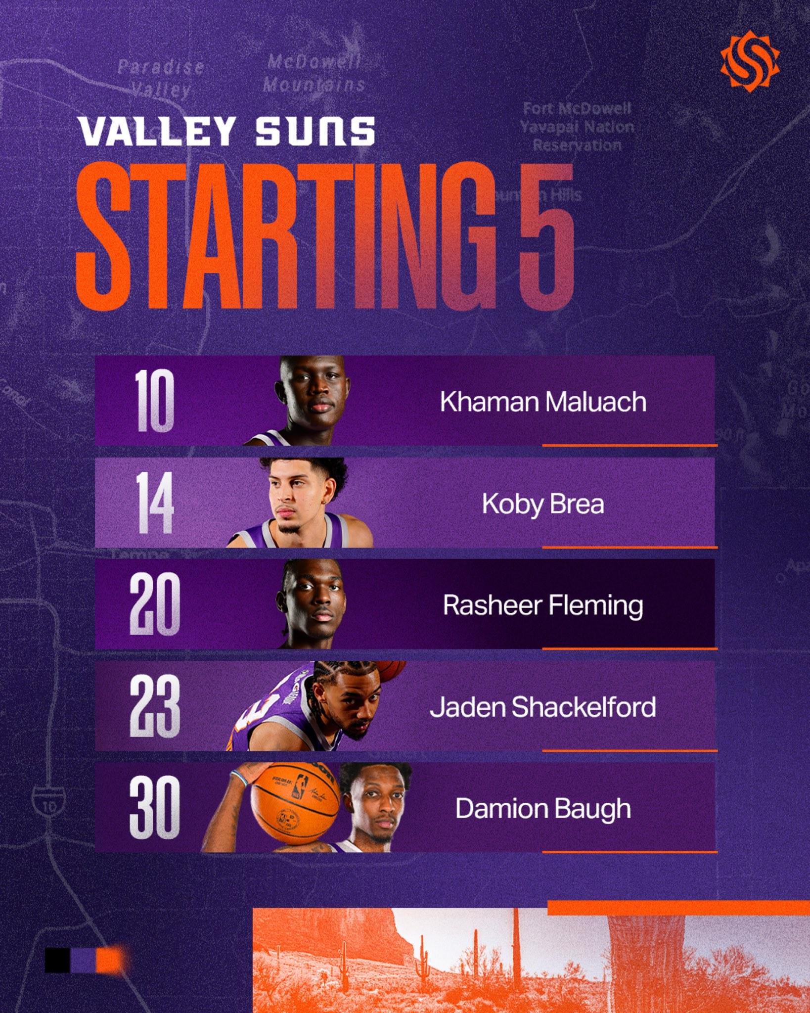 北京时间11月15日,NBA G联赛2025-26赛季开赛夜,山谷太阳坐镇主场迎战波特兰混音,赛前双方公布首发。