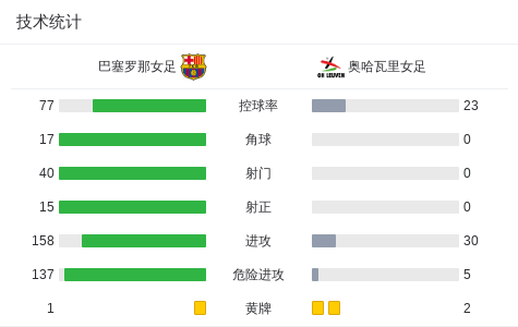 北京时间11月13日,女足欧冠联赛阶段第3轮展开较量,巴塞罗那女足以3:0战胜奥哈瓦里女足。比赛中,亚历克西娅-普特利亚斯主罚点球命中,为球队先拔头筹。随后,埃费拉茨不慎将球打入自家球门,扩大了对方领先优势。此后,伊雷妮-帕雷德斯接马皮-莱昂助攻再下一城,帮助球队锁定胜局。最终全场比赛结束,巴塞罗那女足以三球完胜对手,以3战全胜的战绩继续领跑欧冠联赛阶段积分榜。