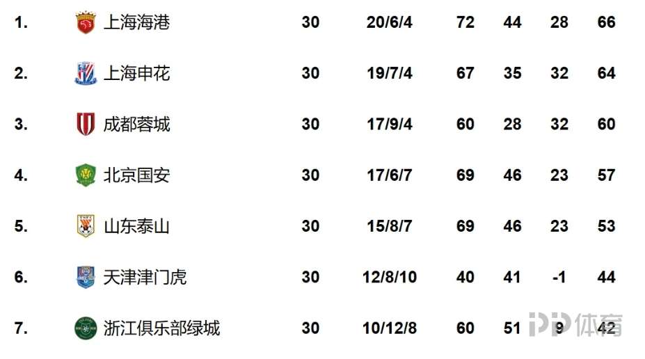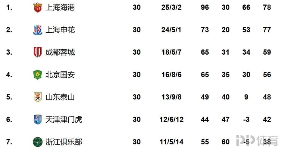 有趣的是,本赛季中超前7名与上赛季中超前7名完全一致。分别为:上海海港、上海申花、成都蓉城、北京国安、山东泰山、天津津门虎、浙江队。